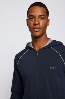 Boss Zip Through Hoodie In Stretch Cotton Jersey With Contrast Piping - Free delivery and returns on ebay plus items for plus members.