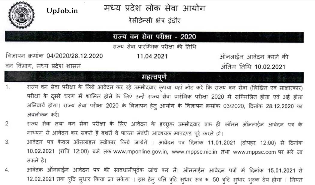 121 Mp State Forest Service Recruitment Exam Notification 2021 Mppsc - Candidates are advised to read overall details.